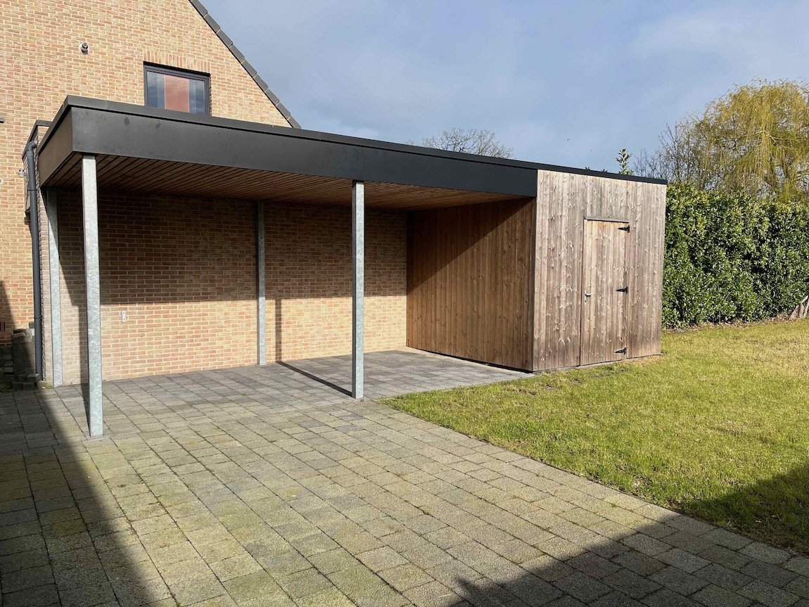 Een zeer recente (halfopen) omvat inkomhal met gastentoilet, woonkamer met open ingerichte keuken, berging/wasplaats, nachthal, badkamer, 3 slaapkamers, zolderberging, en tuin met terras en carport met tuinberging.