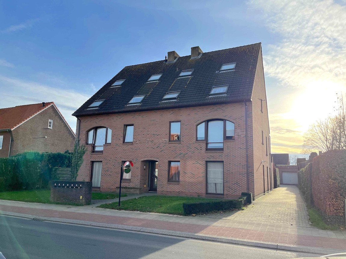 Een appartement (1ste verdiep - geen lift) omvat inkomhal, woonkamer met open keuken, berging, badkamer, 2 slaapkamers, terras en garage.