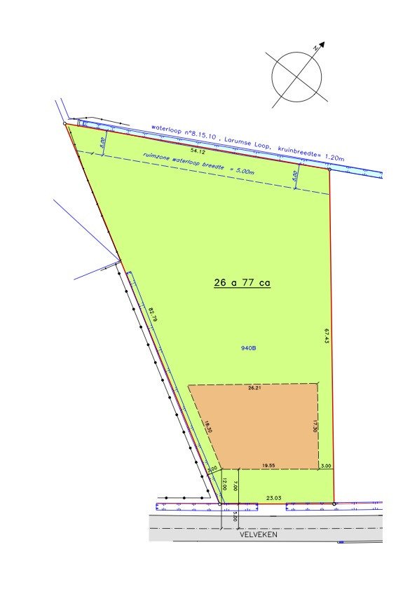 Centraal gelegen perceel grond te Geel - Larum voor gelegen op 26a 77ca met achteraan zicht op een beschermd dorpsgezicht "omgeving van de houten windmolen Larum".