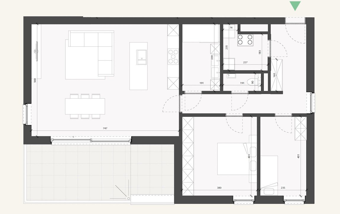 - Woonkamer met open keuken 43,8 m2