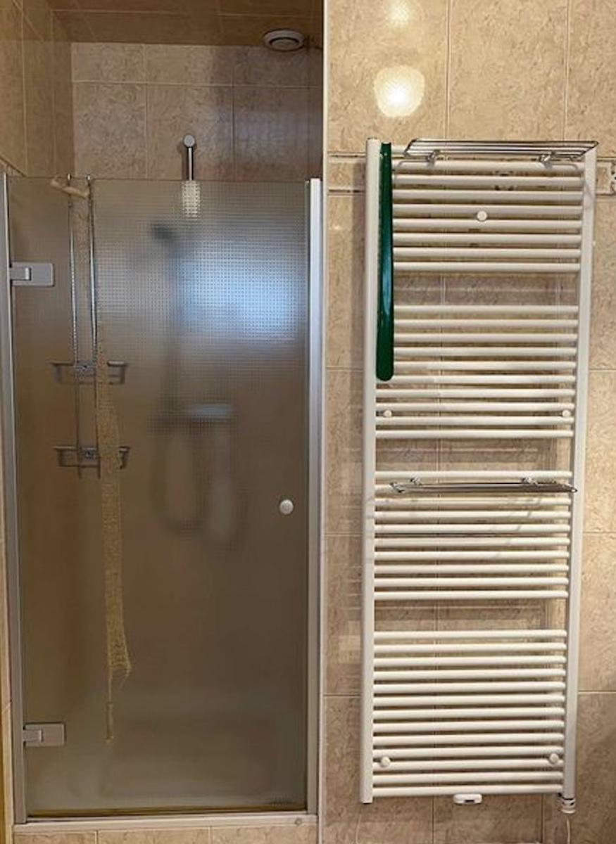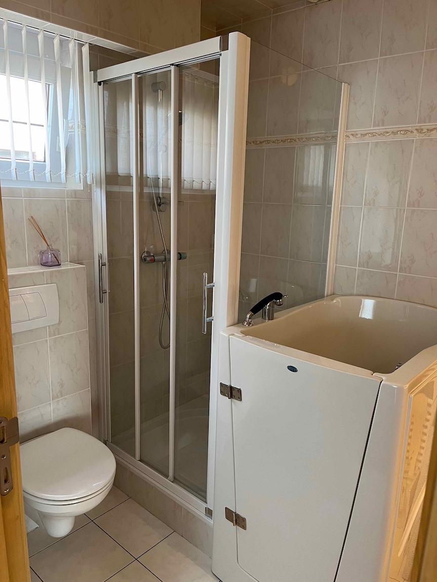 -een slaapkamer met aansluitend volledig ingerichte badkamer