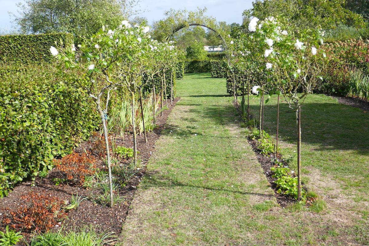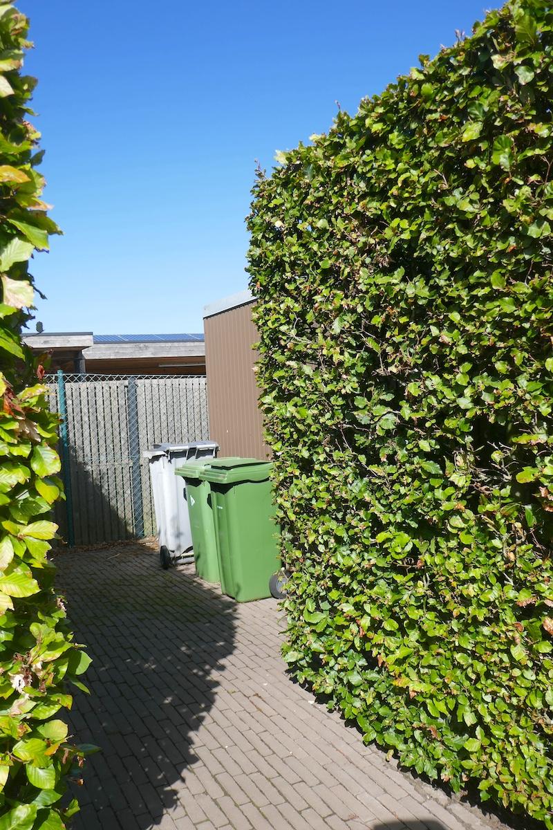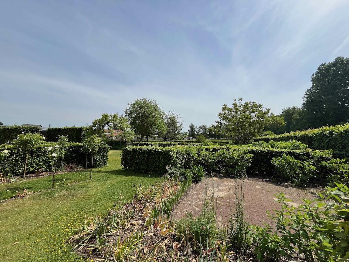 Buiten is er een prachtig aangelegde grote diepe tuin met zonneterrassen. Er is een tuinhuis met buitenkraan. Verder is de tuin dubbel omheind en biedt deze een wijds uitzicht op de achterliggende velden.