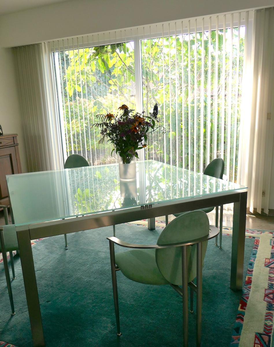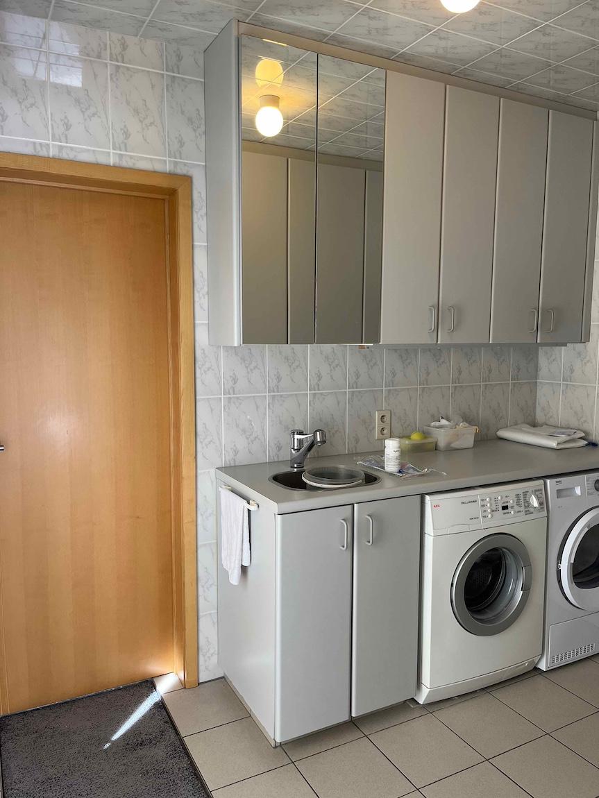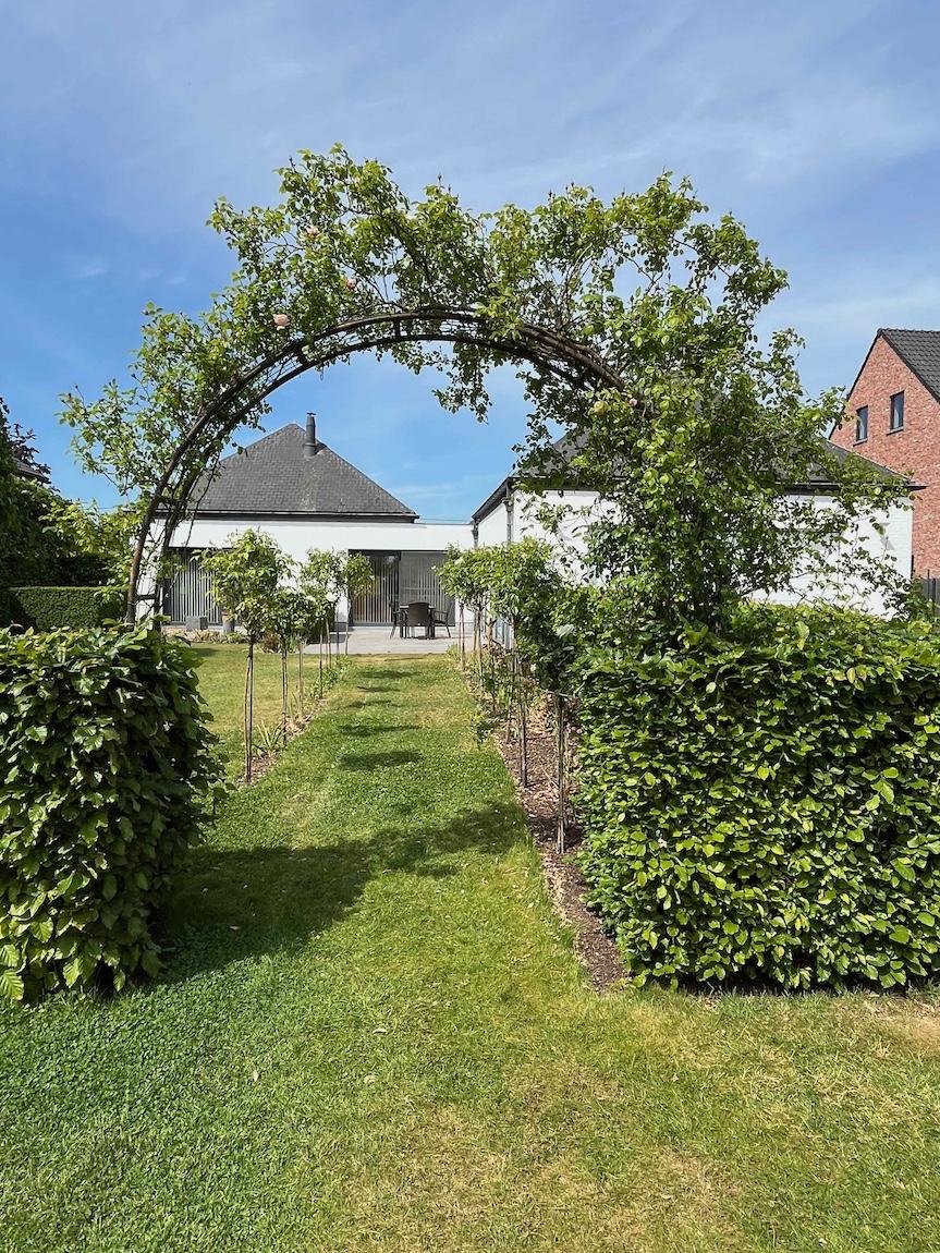 -een praktische keuken uitgerust met alle toestellen, en met toegang tot gezellig terras en prachtig aangelegde tuin