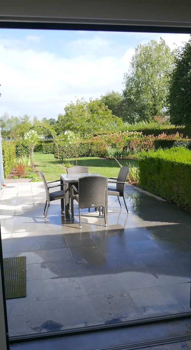 -een uitnodigende patio waardoor de keuken voorzien kan worden met een extra leefruimte